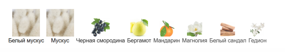 Верхние ноты : Бергамот, мандарин, белая магнолия, черная смородина